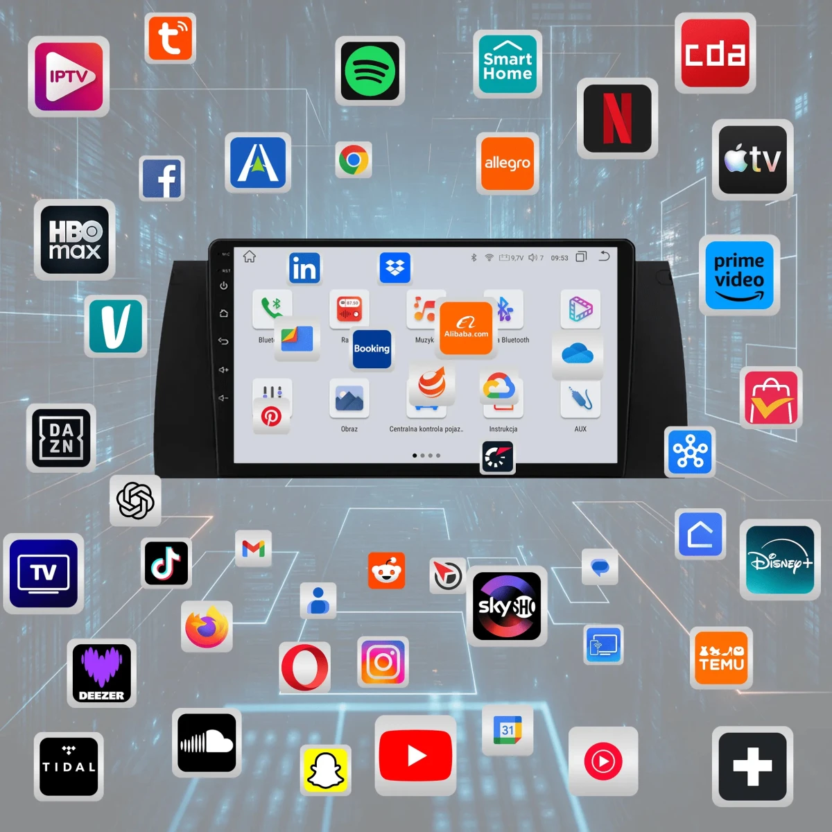 4. Możliwość instalacji aplikacji ze Sklepu Play – zainstaluj dowolne programy, takie jak Google Maps, Spotify, YouTube, Yanosik czy Netflix.