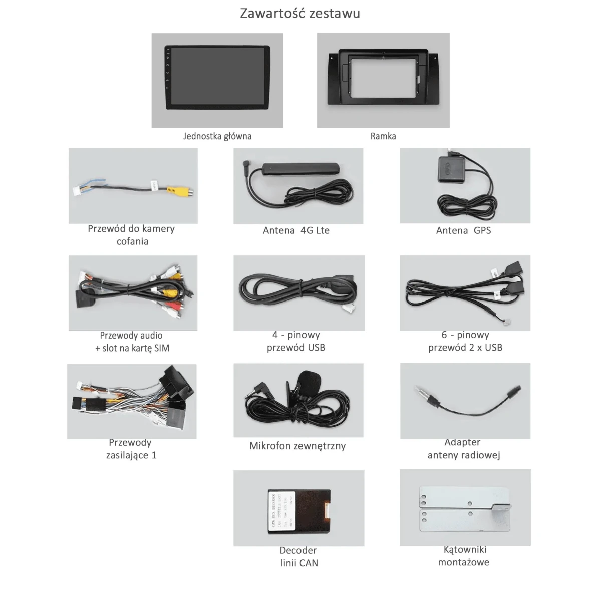 Wiązka zasilająca, antena GPS, antena LTE, kable USB