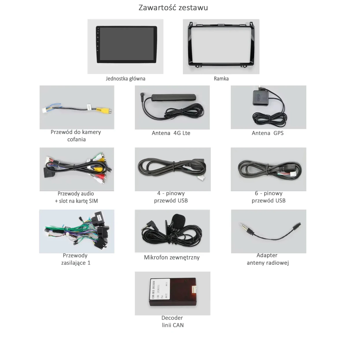 Wiązka zasilająca, antena GPS, antena LTE, kable USB