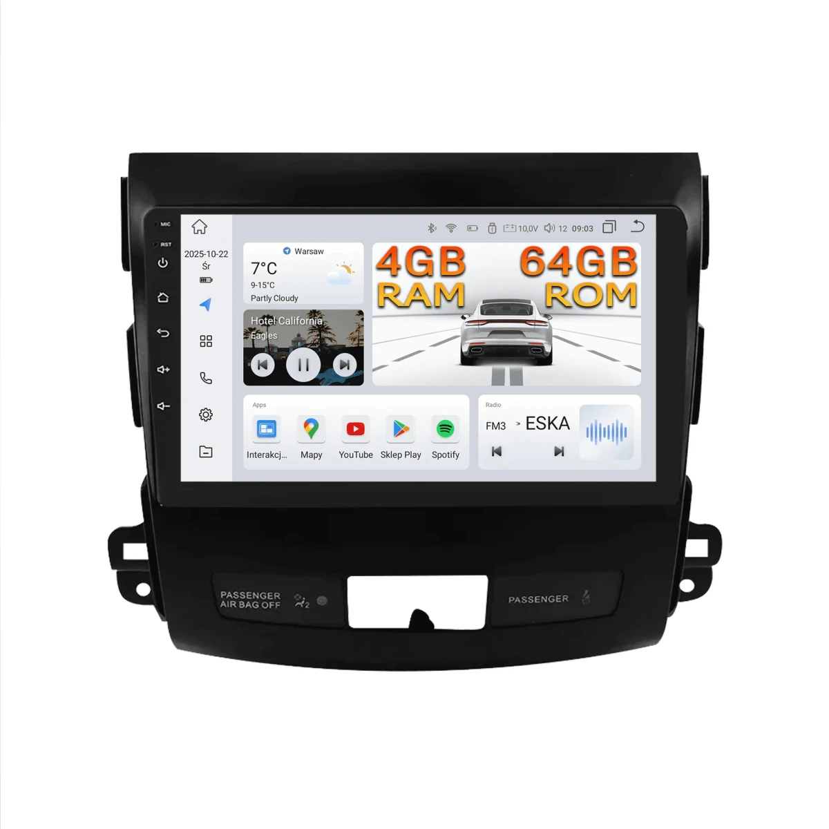 ANDROID AUTO RADIO MITSUBISHI OUTLANDER II 4007 C-CROSSER CARPLAY LTE 64GB