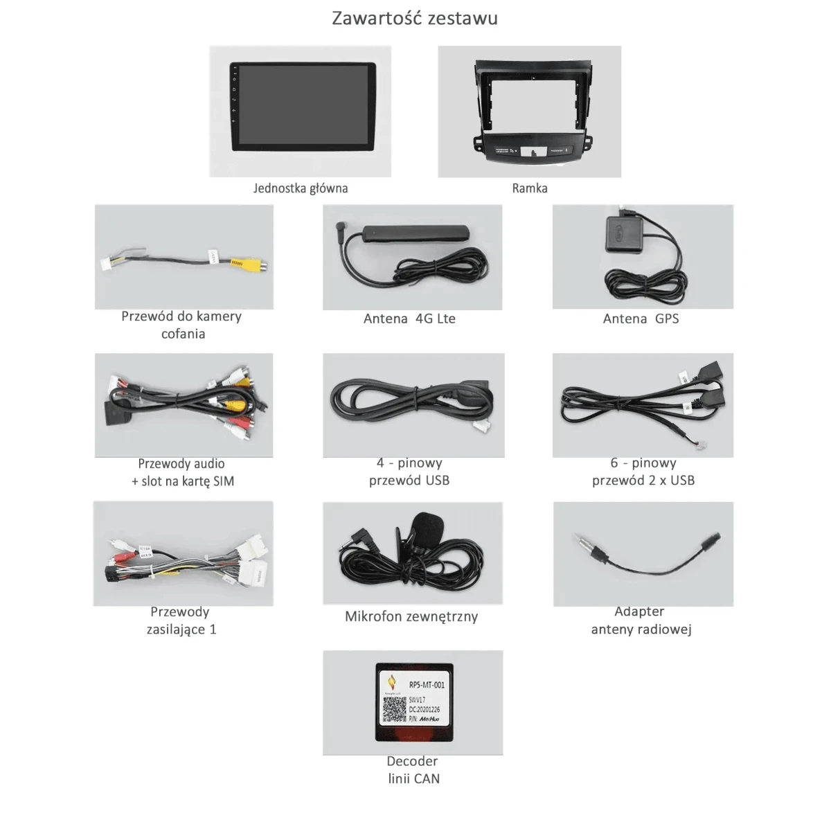 Wiązka zasilająca, antena GPS, antena LTE, kable USB