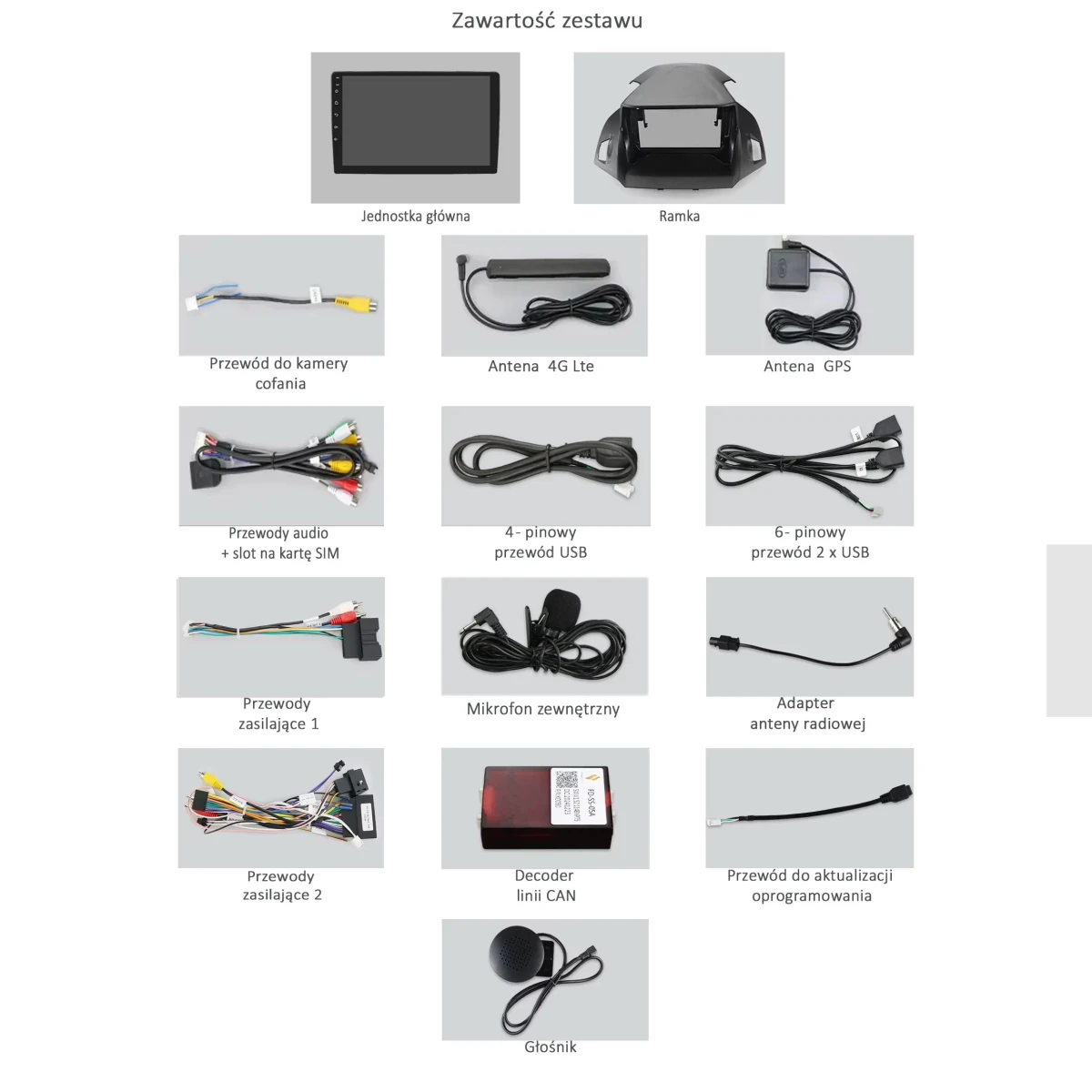 Wiązka zasilająca, antena GPS, antena LTE, kable USB