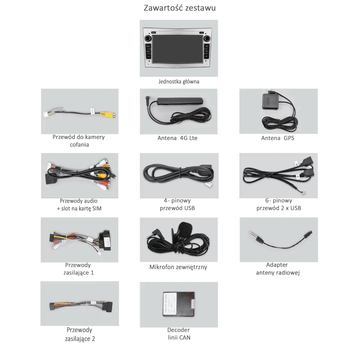Wiązka zasilająca, antena GPS, antena LTE, kable USB