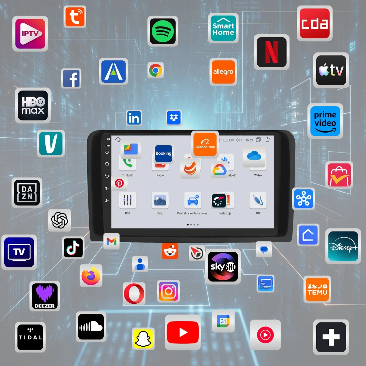 4. Możliwość instalacji aplikacji ze Sklepu Play – zainstaluj dowolne programy, takie jak Google Maps, Spotify, YouTube, Yanosik czy Netflix.
