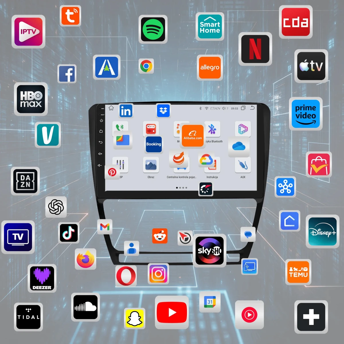 4. Możliwość instalacji aplikacji ze Sklepu Play – zainstaluj dowolne programy, takie jak Google Maps, Spotify, YouTube, Yanosik czy Netflix.