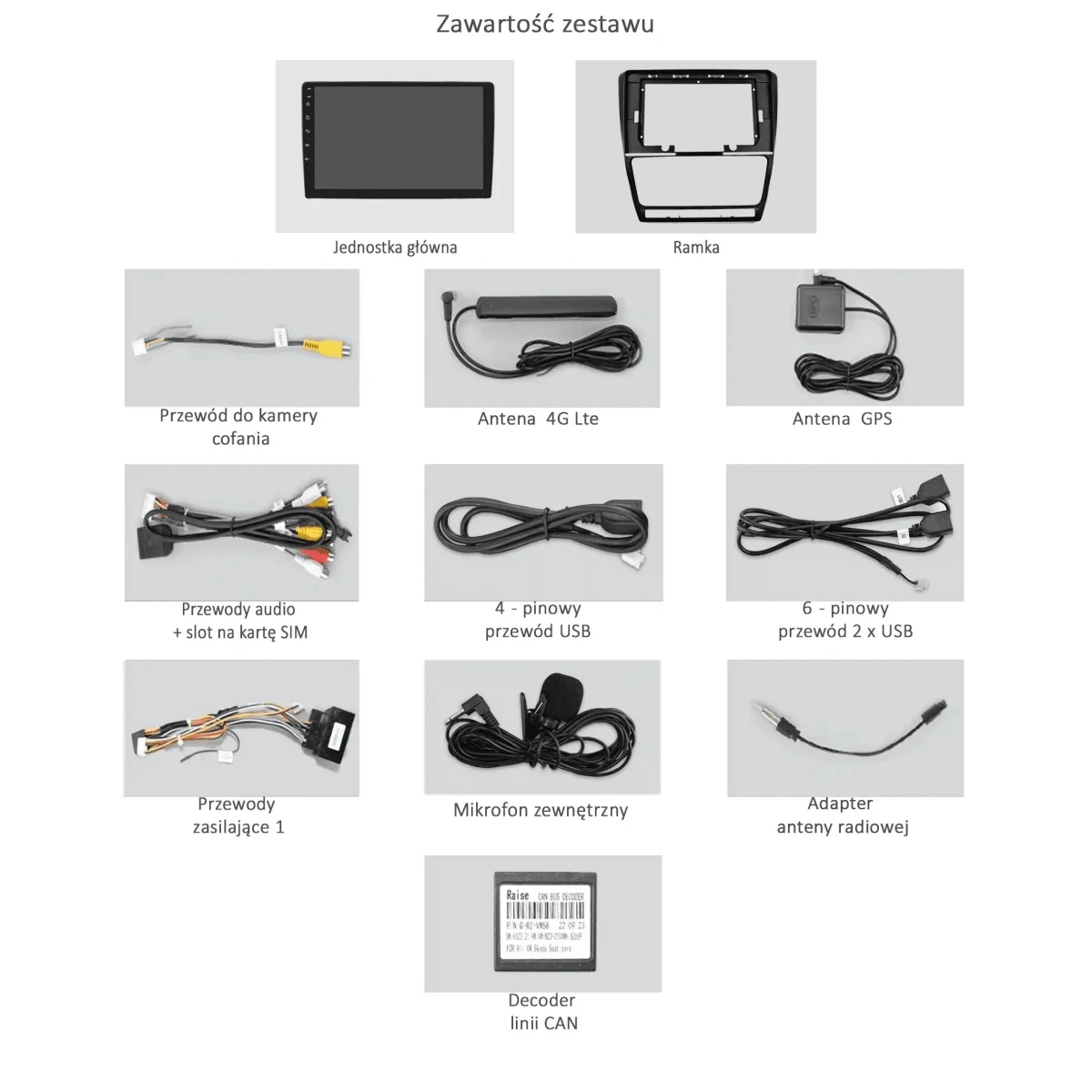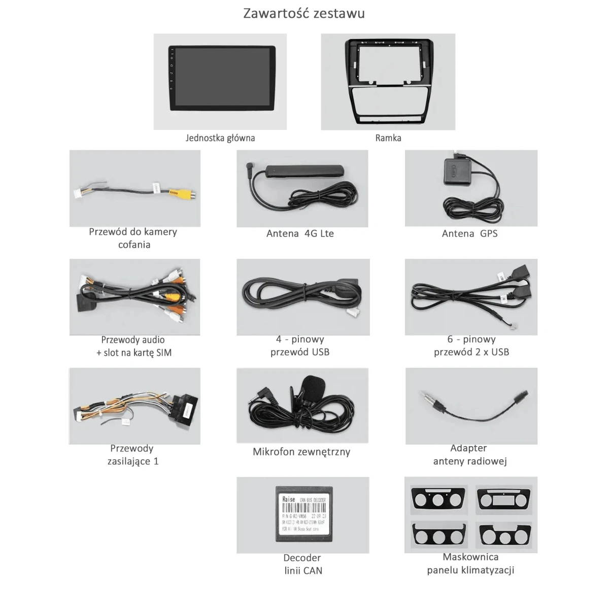Wiązka zasilająca, antena GPS, antena LTE, kable USB