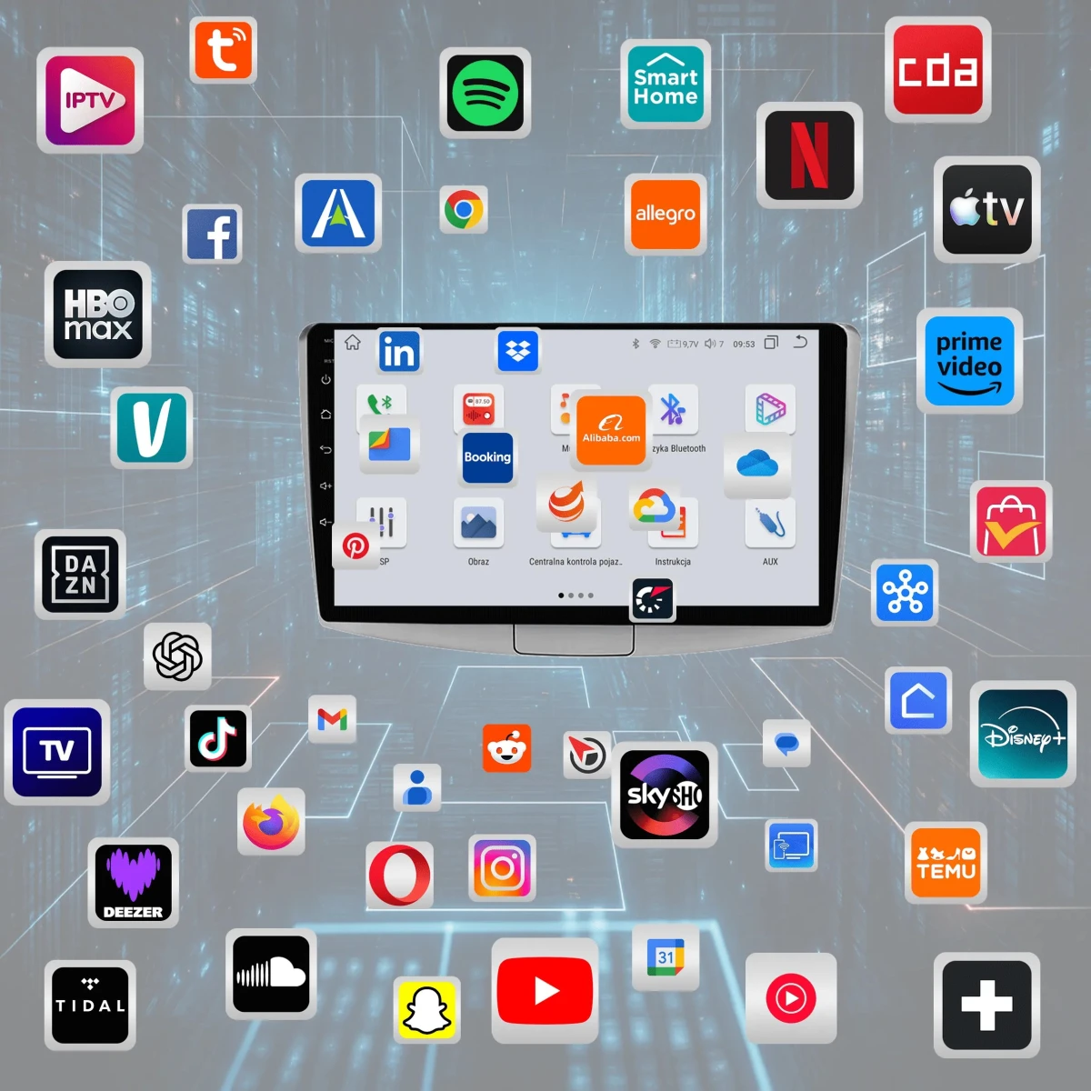 4. Możliwość instalacji aplikacji ze Sklepu Play – zainstaluj dowolne programy, takie jak Google Maps, Spotify, YouTube, Yanosik czy Netflix.