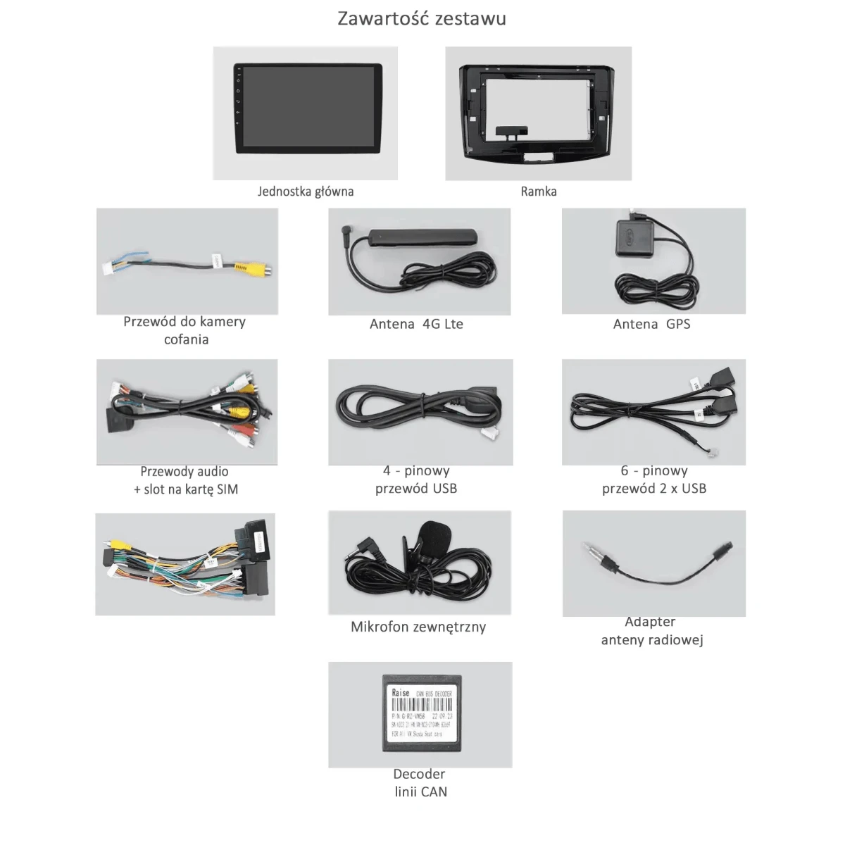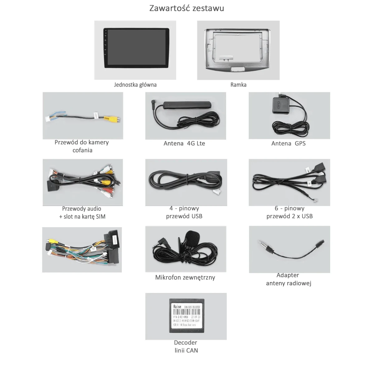 Wiązka zasilająca, antena GPS, antena LTE, kable USB