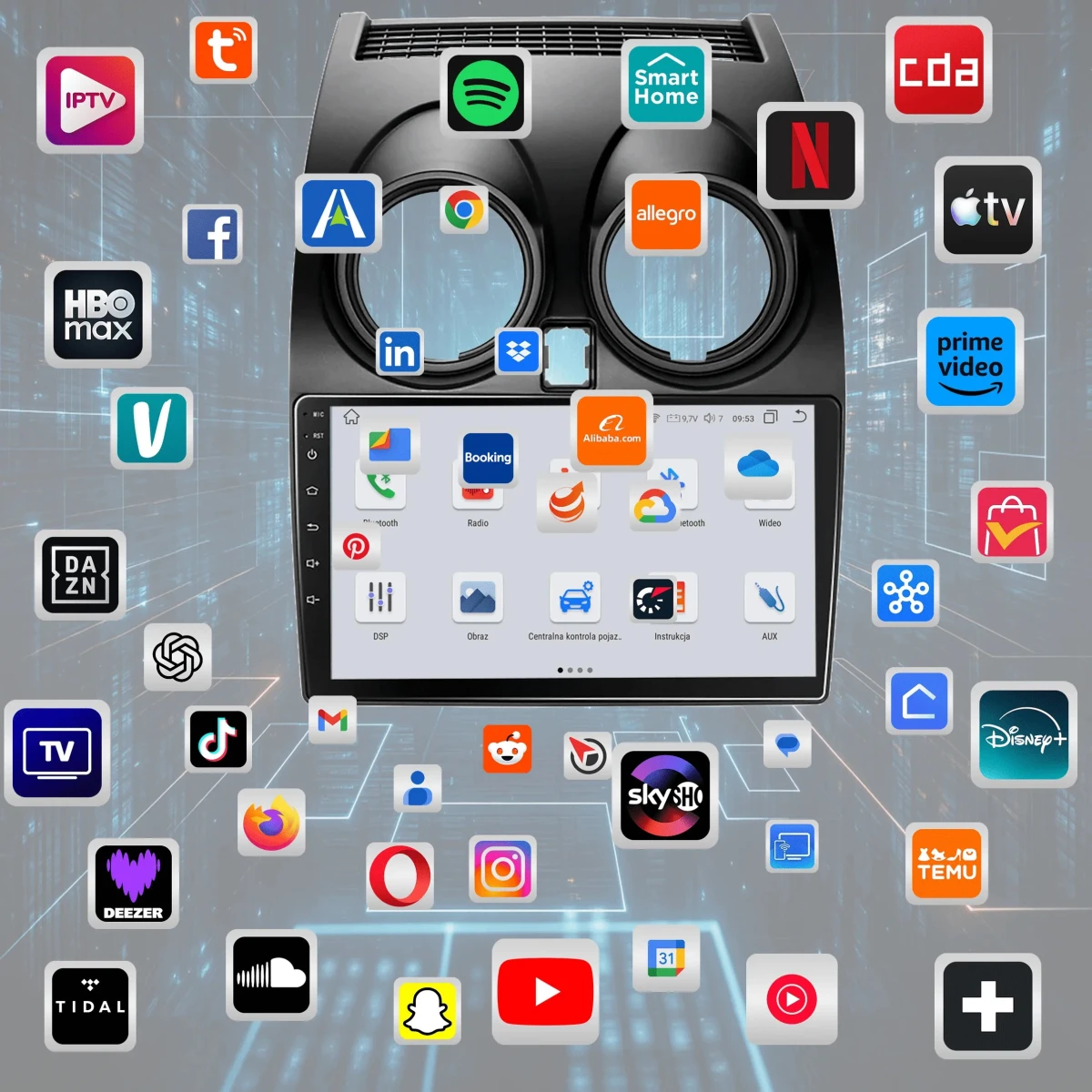 4. Możliwość instalacji aplikacji ze Sklepu Play – zainstaluj dowolne programy, takie jak Google Maps, Spotify, YouTube, Yanosik czy Netflix.