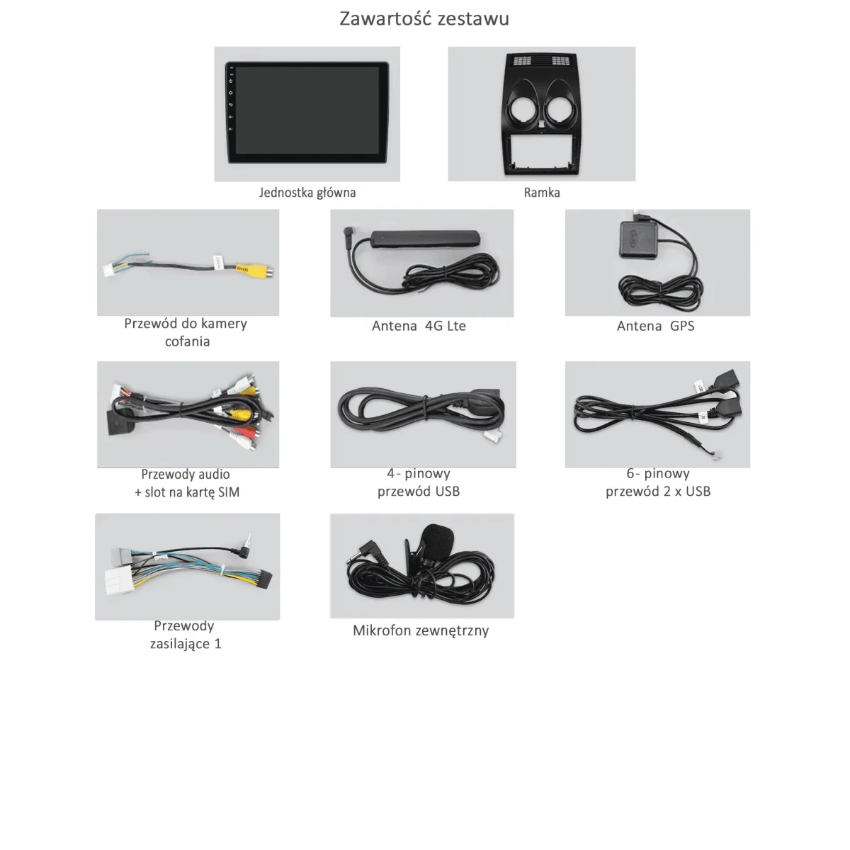 Wiązka zasilająca, antena GPS, antena LTE, kable USB