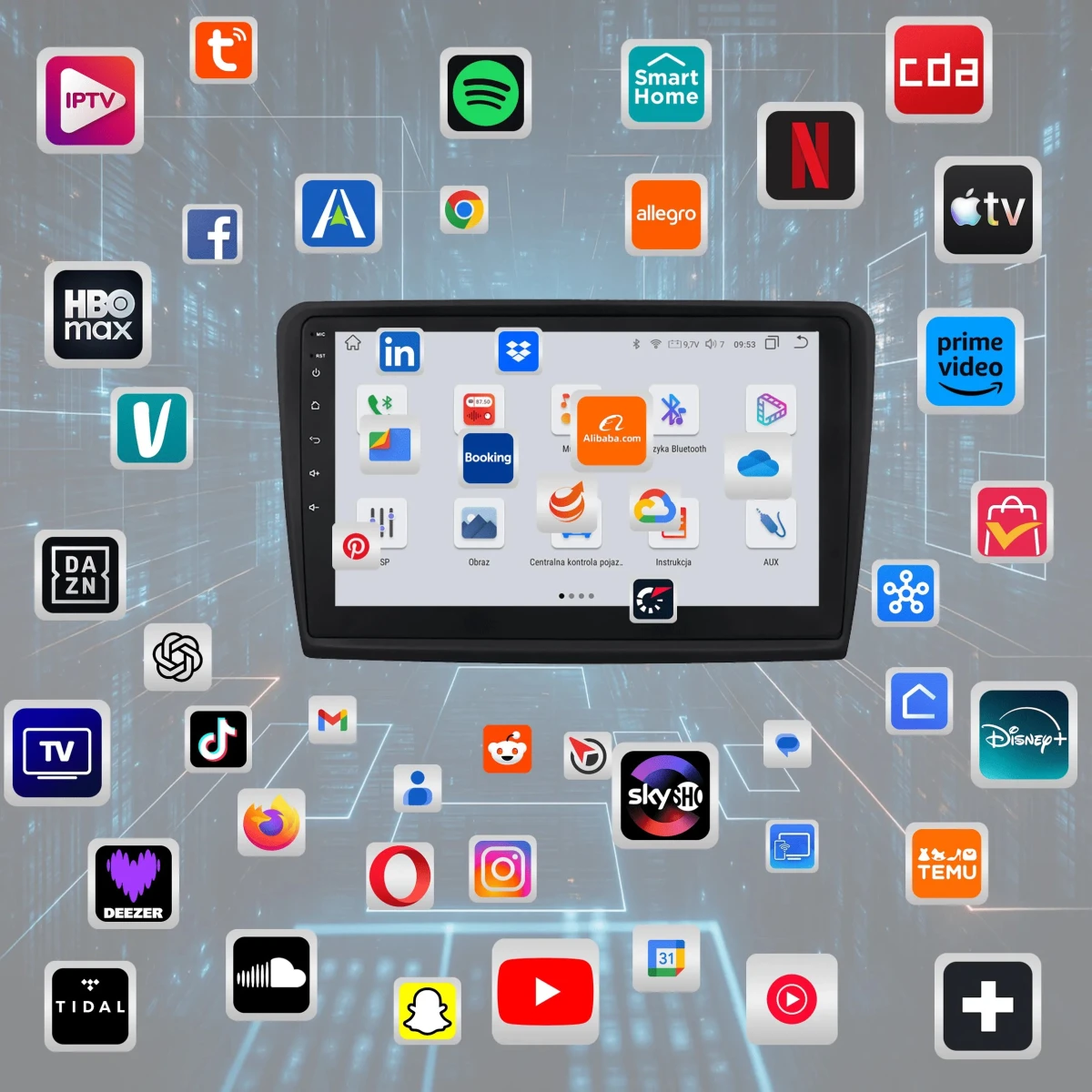4. Możliwość instalacji aplikacji ze Sklepu Play – zainstaluj dowolne programy, takie jak Google Maps, Spotify, YouTube, Yanosik czy Netflix.