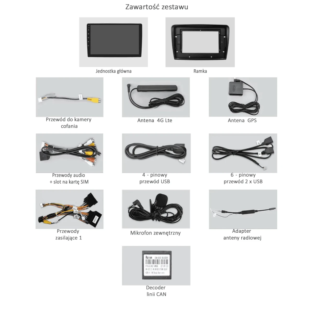 Wiązka zasilająca, antena GPS, antena LTE, kable USB